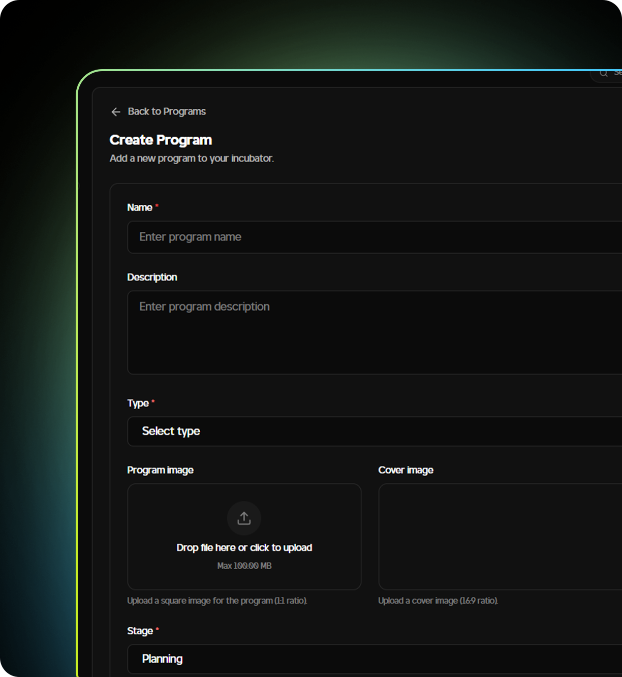 Manage cohorts, applications, milestones, mentors, and deal flow — in one platform built for incubators, accelerators, and venture builders.